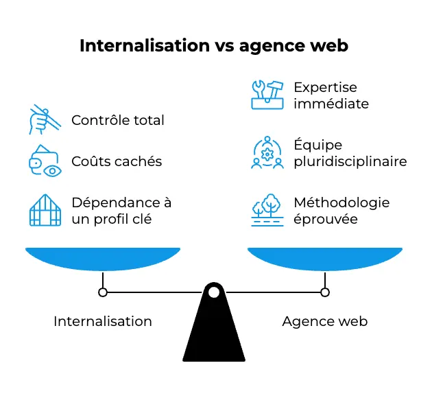 Voici un aperçu des forces et faiblesses de l’internalisation comparée à l’externalisation via une agence :